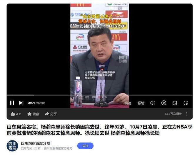 可惜徐长锁没等到杨瀚森在NBA上场,今年就因为生病走了,才52岁。